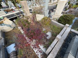 今回は納骨をされる前にお墓を綺麗にしたいとのことで雑草対策工事のご依頼頂きました。